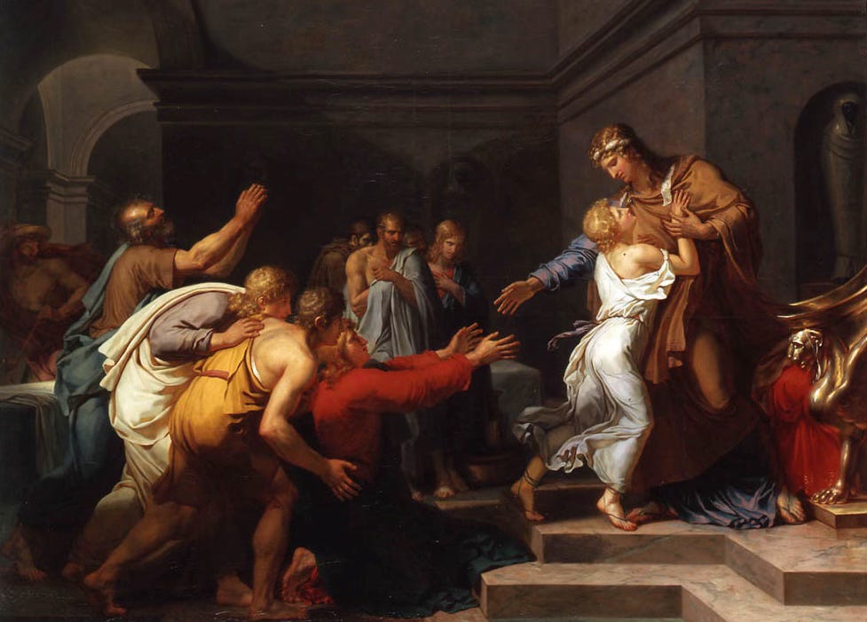 Painting: Joseph Recognized by His Brothers by Anne-Louis Girodet de Roussy-Triosonnave (1789), image by VladoubidoOo, public domain via Wikimedia Commons