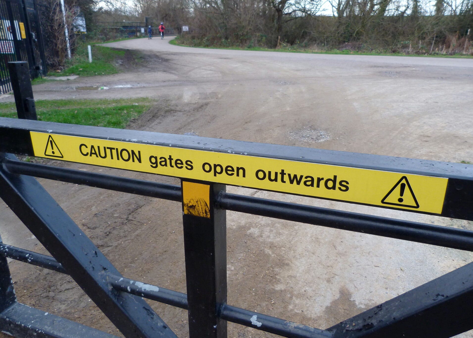 Photo: “CAUTION gate opens outwards” by Gordon Joly